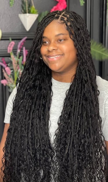 3 curly human hair included & expression hair, (client have the right to choose between mid back and waist length) for any others length there is an additional charge.